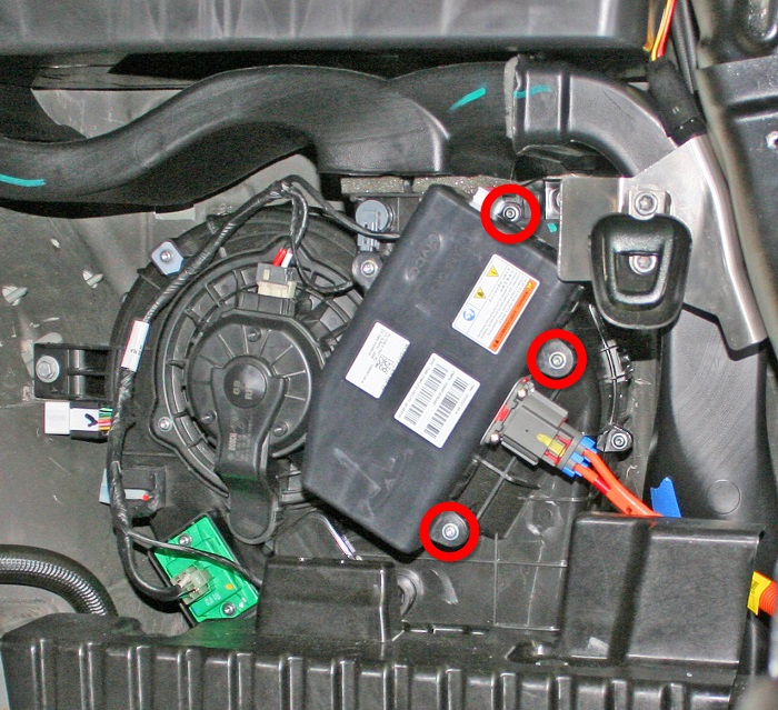 Remove the screws (x3) that secures the PTC heater to the standoffs on the