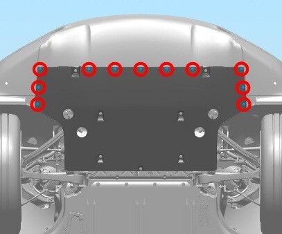 Note11x Push clips, 2x bolts, 10mm, 3 Nm, ensure tabs from fascia to aeroshield are properly aligned.