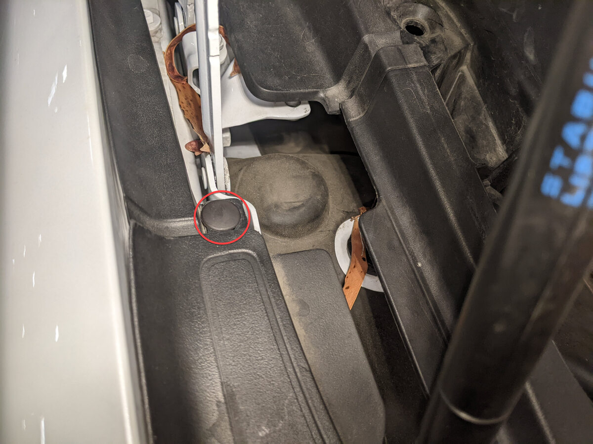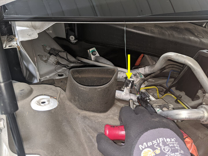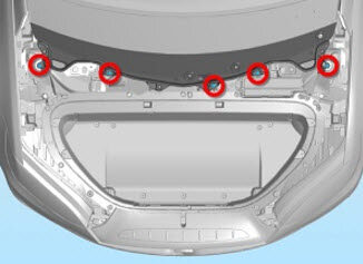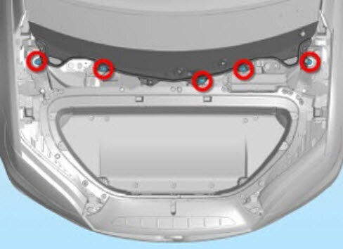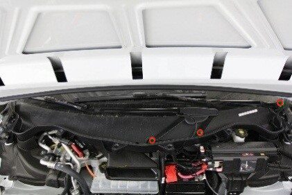 Note2x nuts, 17mm, 35 Nm, Disconnect washer hoses at cowl