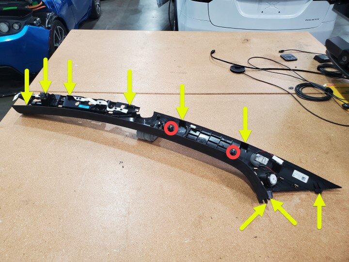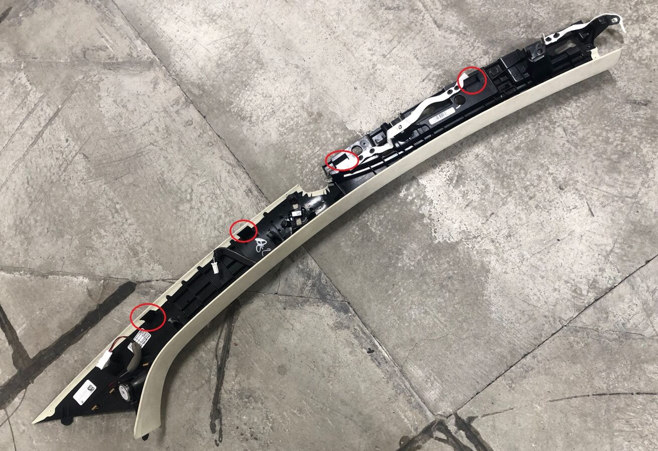 Note6x clips, 5x tabs, Release clips then slide bezel toward front of vehicle