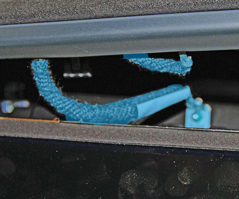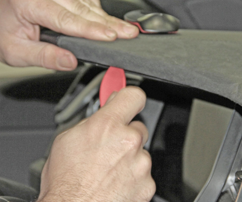 On each side of the vehicle, release the screw that secures the top pad to the IP bracket (torque 1.2 Nm)