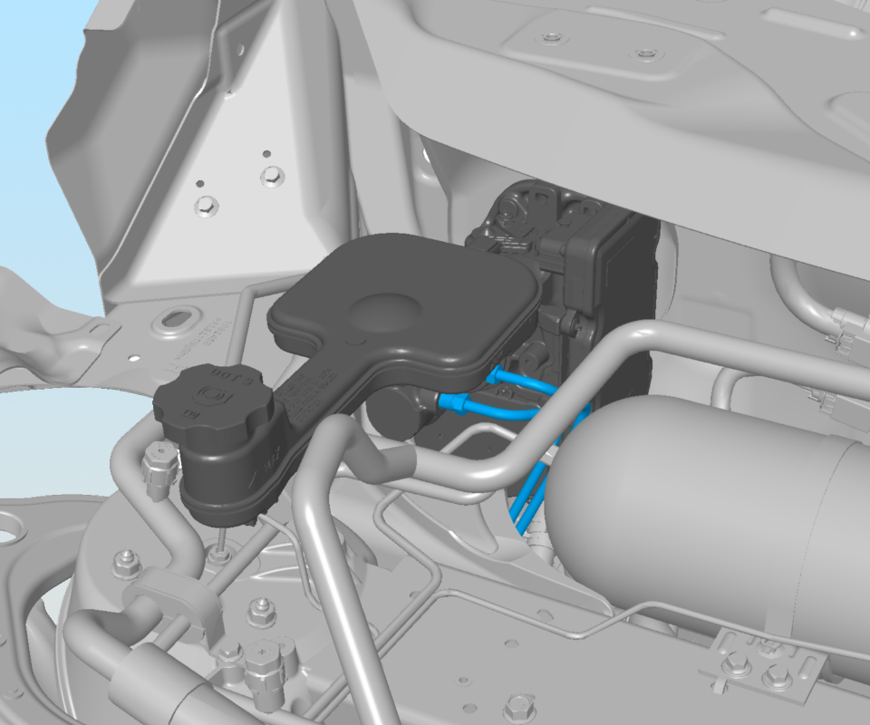 - Remove the fasteners that secure the air suspension reservoir (torque 6 Nm), and then move the air suspension reservoir to the side for access to the master cylinder.