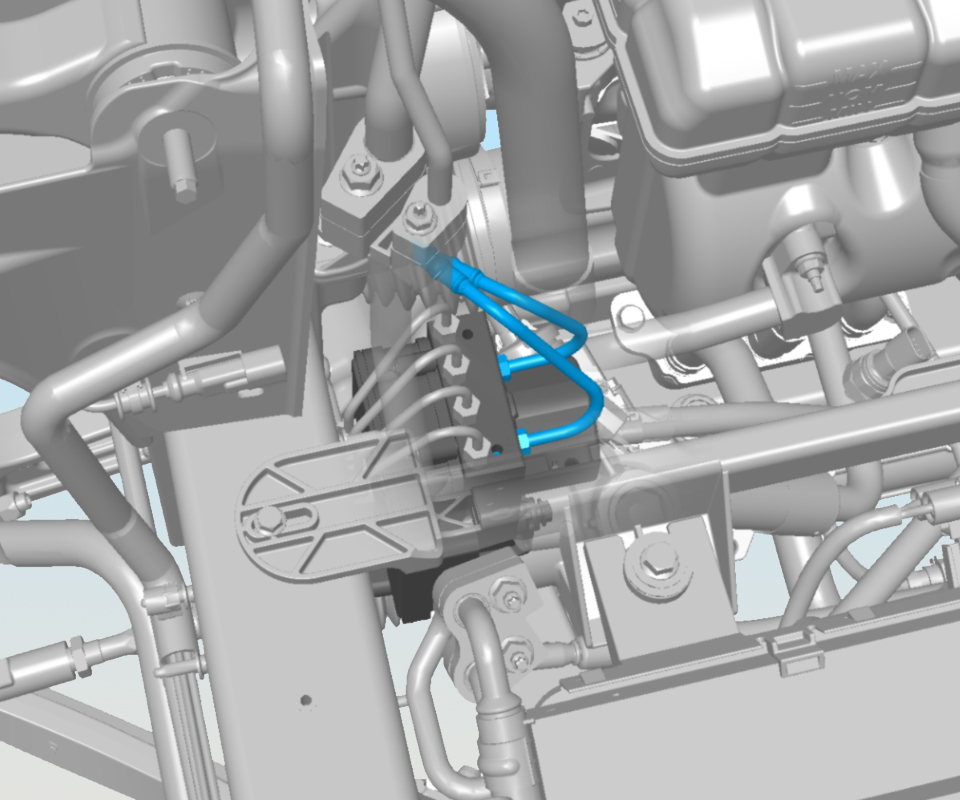 Release the fittings that secure the hydraulic lines to the ABS module (torque 23 Nm).
