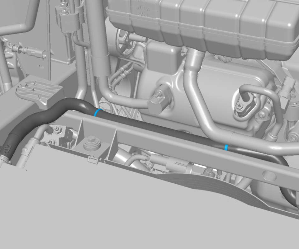 Use a trim tool to release the clips that secure the hose to the top of the condenser fan.