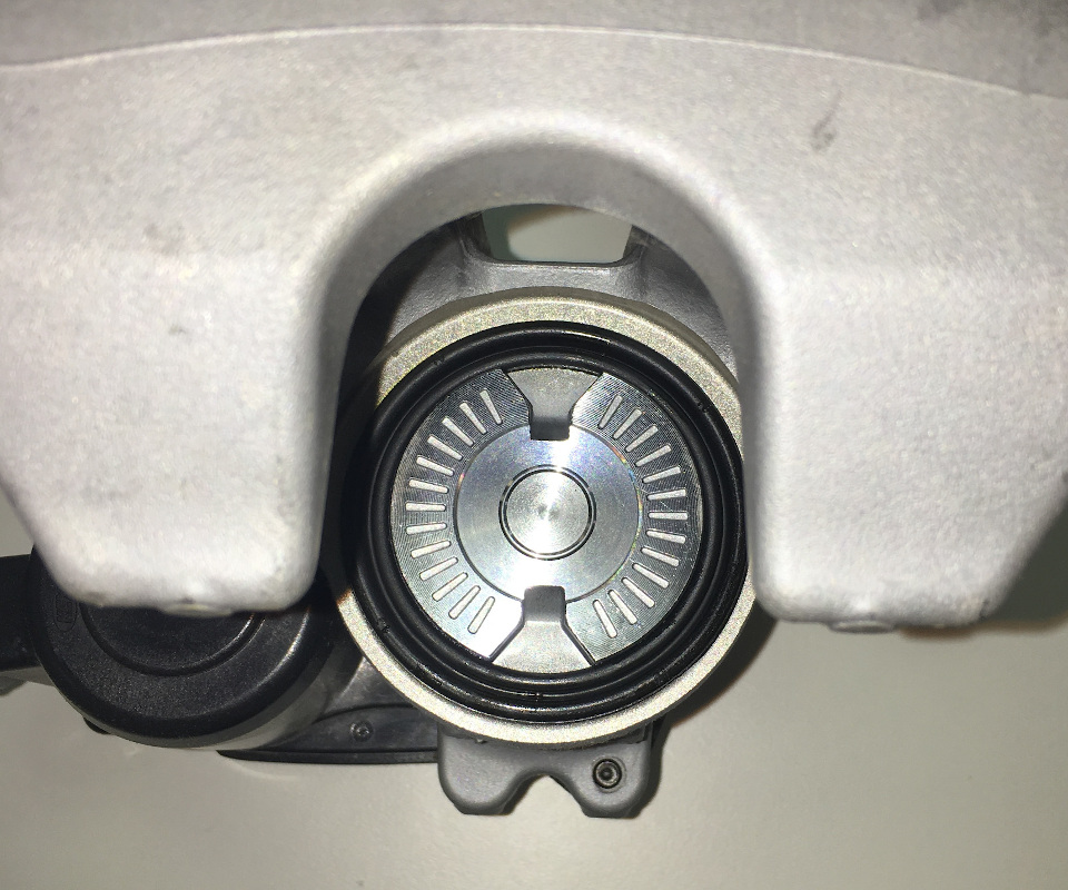 Use needle-nose pliers to ensure that the slots in the rear brake caliper piston face are at the 12 o'clock and 6 o'clock positions.