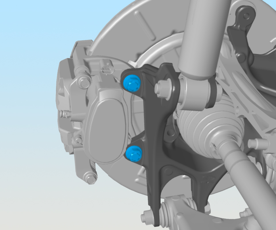 Remove the bolts (x2) that attach the LH rear brake caliper to the LH rear knuckle, and then remove the caliper from the vehicle.