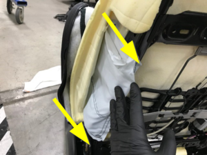 26. Pull the seat upholstery away from the air bag to gain access to the air bag electrical connector