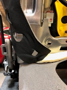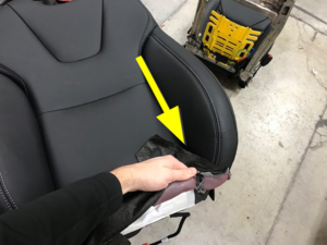 23. Remove the lower flap covering the inboard corner of the seat back frame