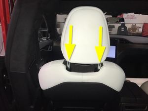 1x retaining spring, Depress the material around the headrest post to expose the release clip
