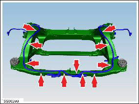 - Release the harness clips (x11) from the subframe assembly.