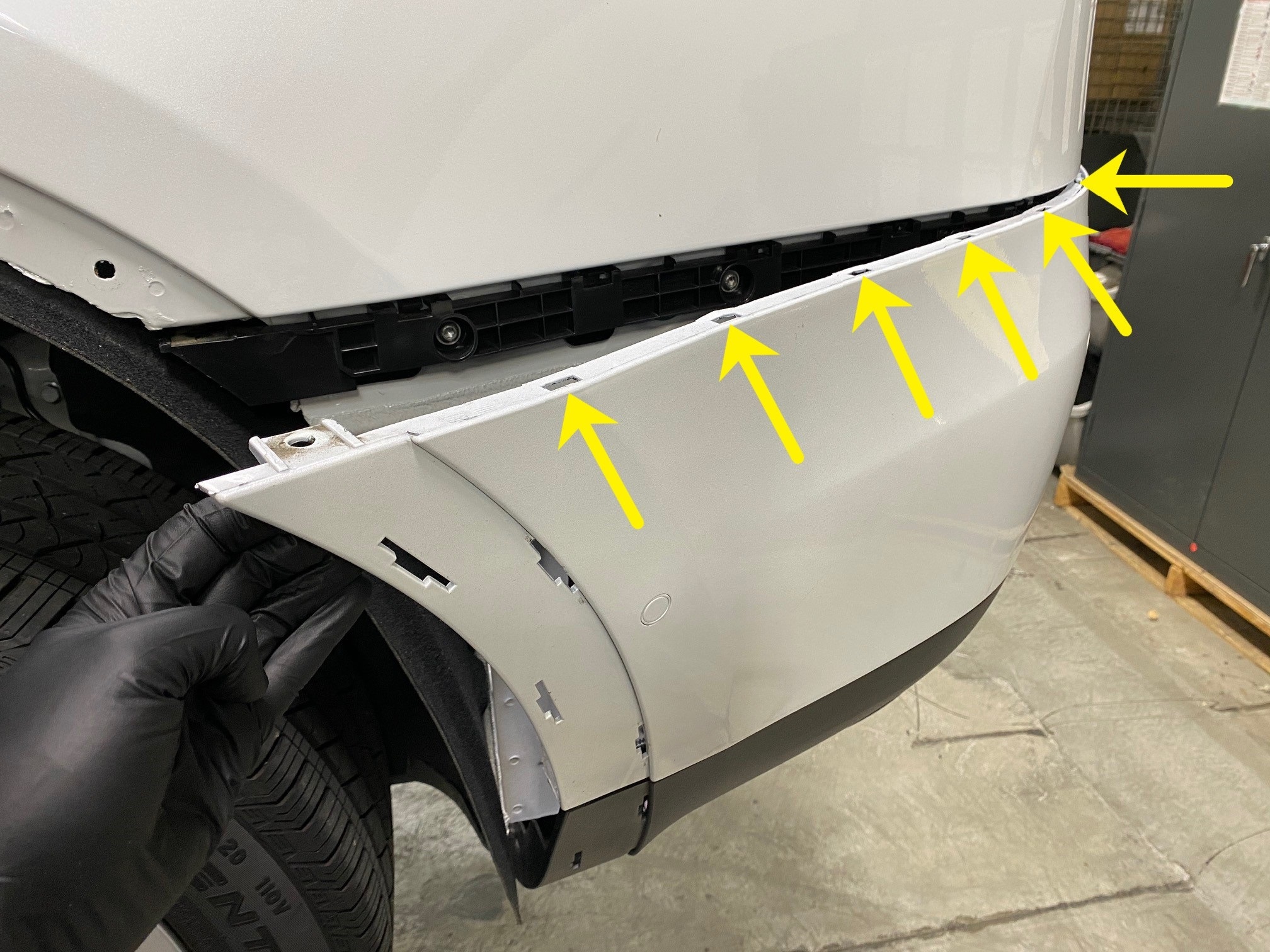 rear fascia back into position and install the tabs (x6) that attach the fascia to