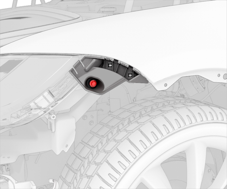 Release the clips (x2) that attach the side repeater and camera assembly to the LH front fender, and then remove the assembly from the vehicle.
