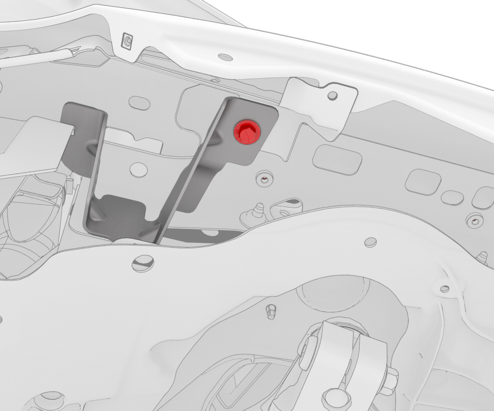 Remove the bolt that attaches the inner LH front fender to the vehicle.