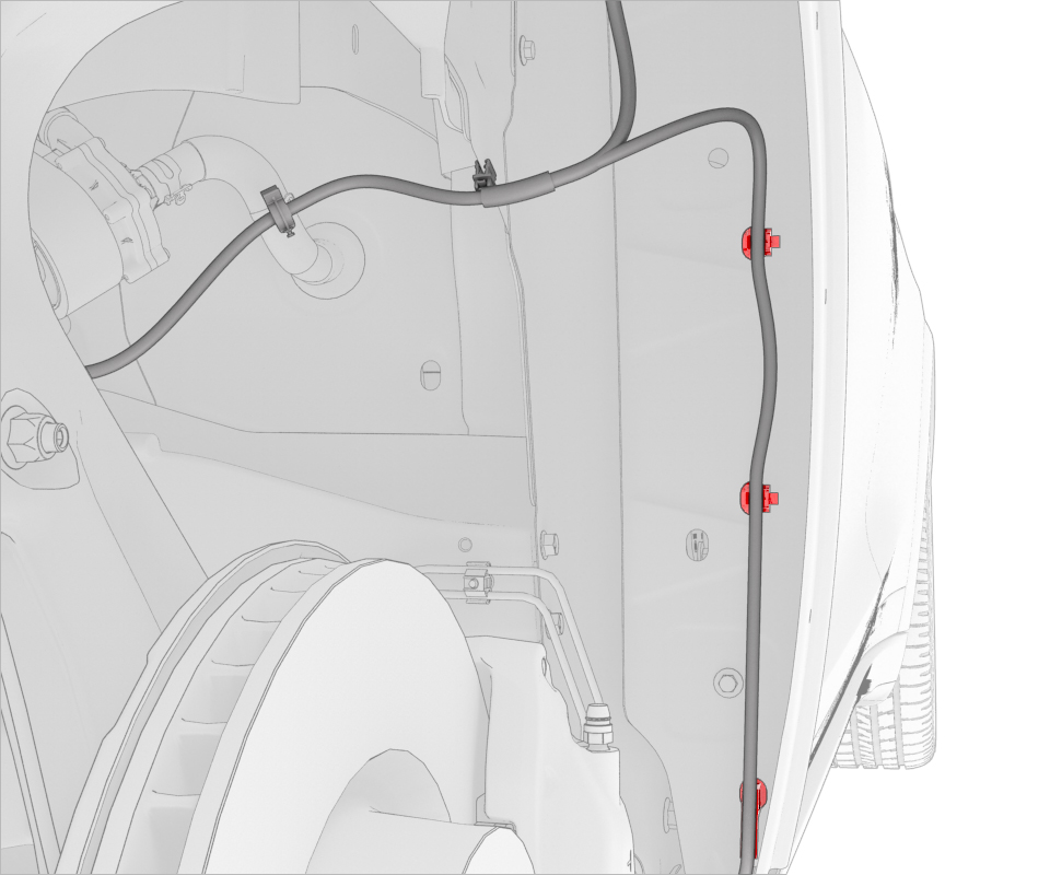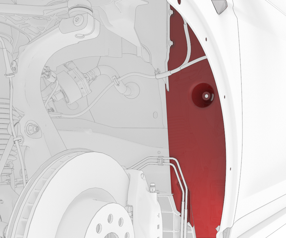Remove the bolts (x4) that attach the upper LH front fender to the vehicle.