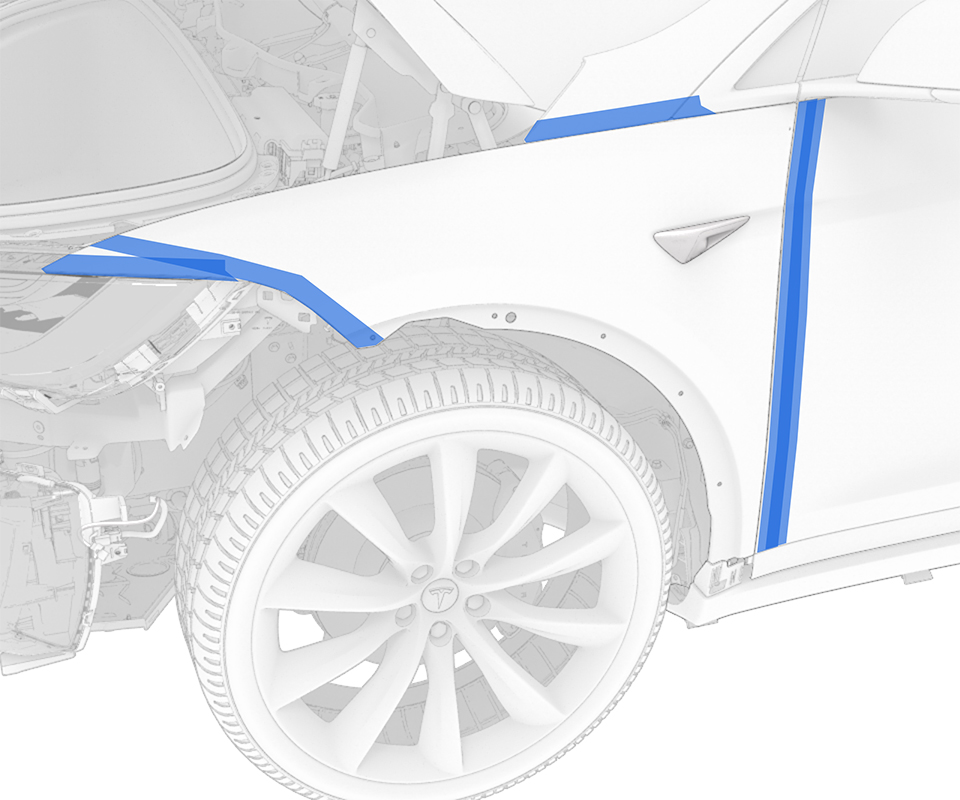 Apply protective tape to the edges of the lower A-pillar and LH front door that are adjacent to the LH front fender.