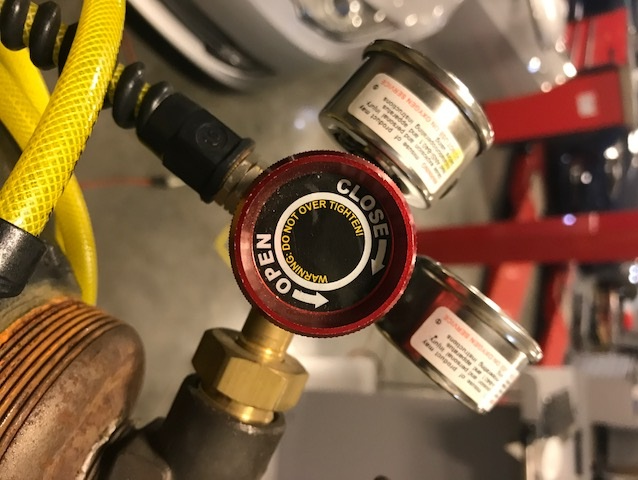 - Close the pressure regulator valve on the Nitrogen bottle.