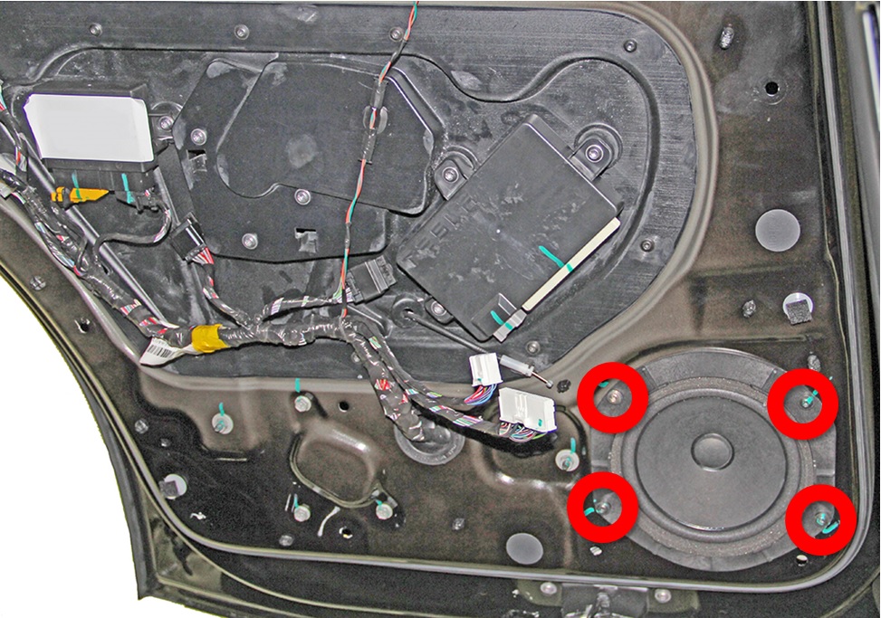 Remove the screws (x4) that secure the speaker to the rear door (torque 4