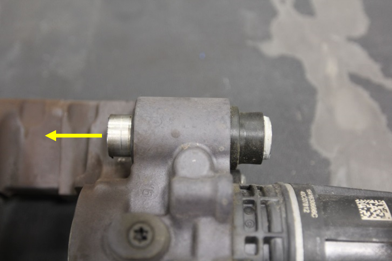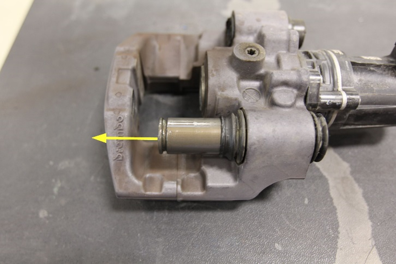 36. If corroded, use the brush and Tesla–approved brake cleaner to clean the upper sliding pin, and then wipe with a clean shop towel.