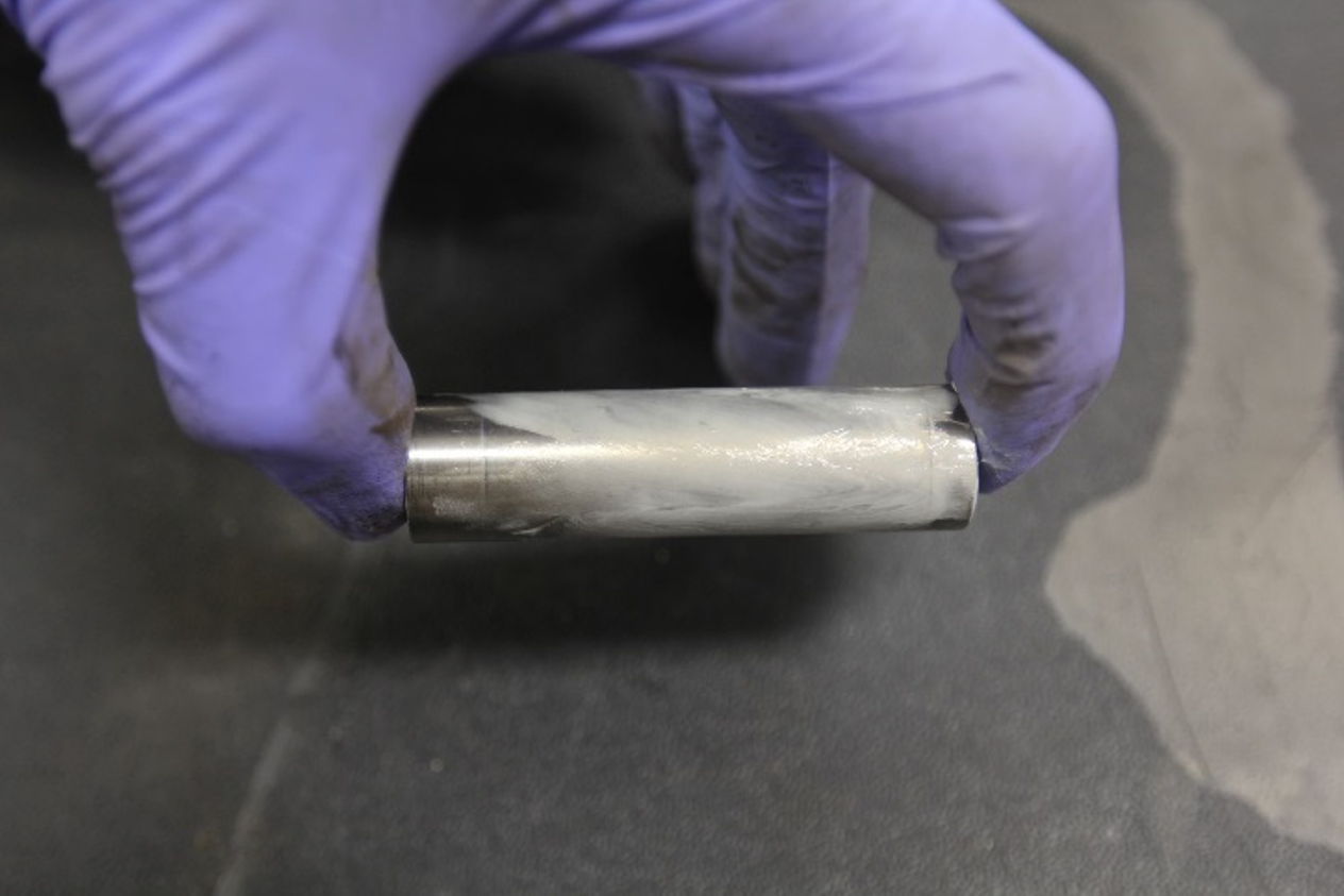 24. Rotate the front LH rotor 180 degrees, and then use the Tesla-approved brake cleaner to clean any lubricant or debris from the rotor. Repeat.