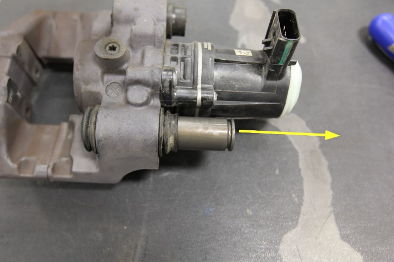 37. Lightly coat the upper sliding pin with Klueber GLK 1PF lubricant, and then reinstall the pin into the LH parking brake caliper.