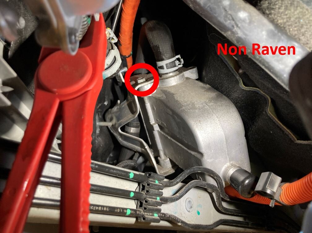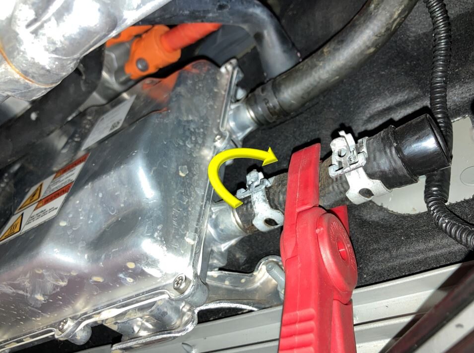 NoteThis is to obtain clearance for the battery heater, and only applies to Raven vehicles. Re-adjust the hose clamp pliers as needed.