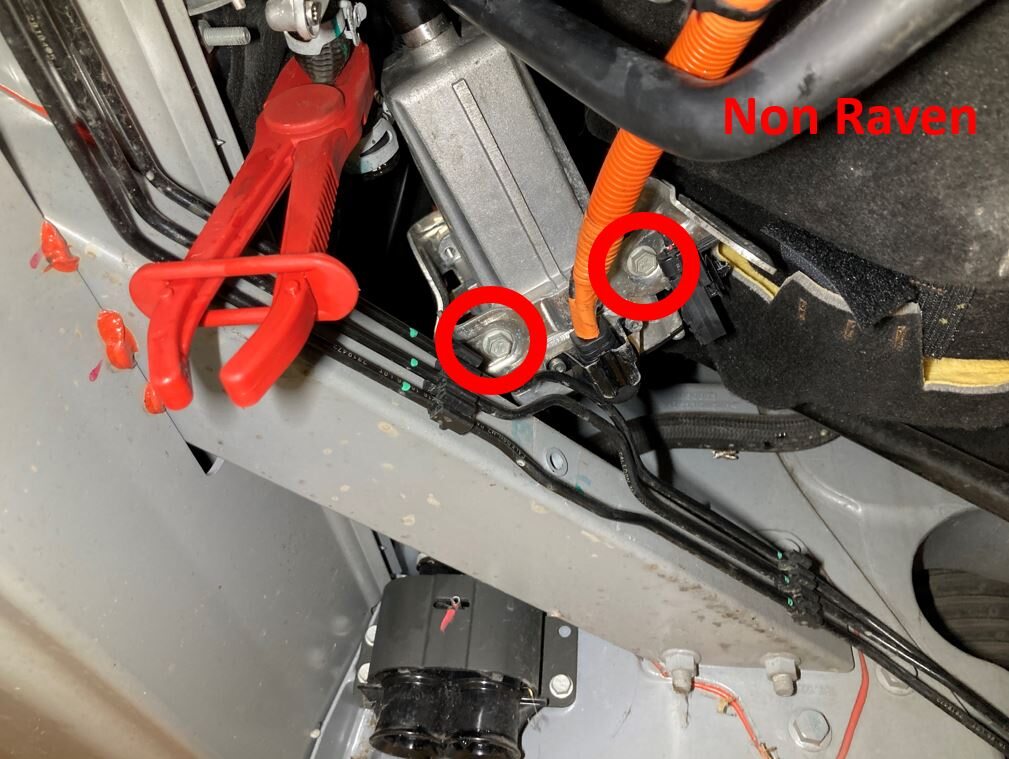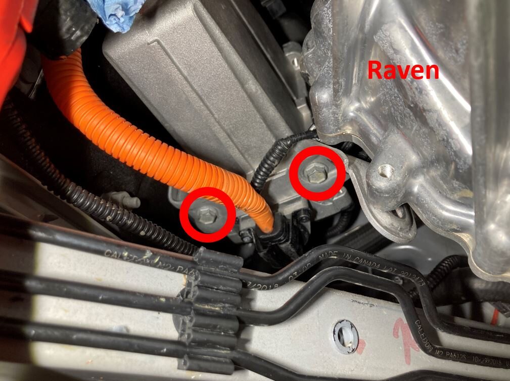 Note3x bolts (non-Raven) or 2x bolts (Raven), torque 8 Nm. Move battery heater as needed.