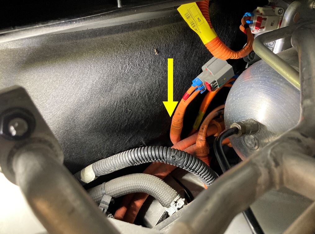 coolant heater cable past the HV FDU cable towards the bottom of the