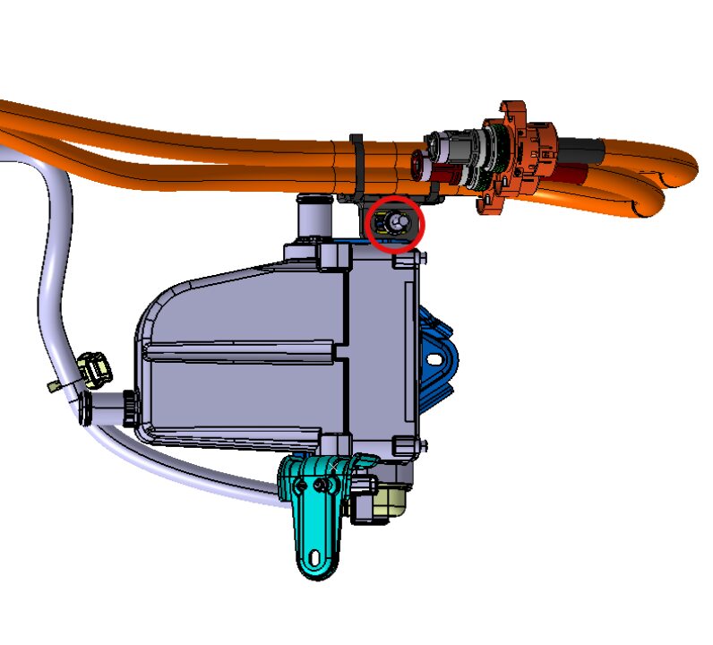 and clip that attach the FDU HV cable to the electric coolant heater.