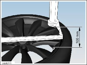 Rotate the wheel and tire so that the upper roller is 100 mm away from the valve. Use the upper roller to press down on the top bead until the TPMS sensor is accessible.