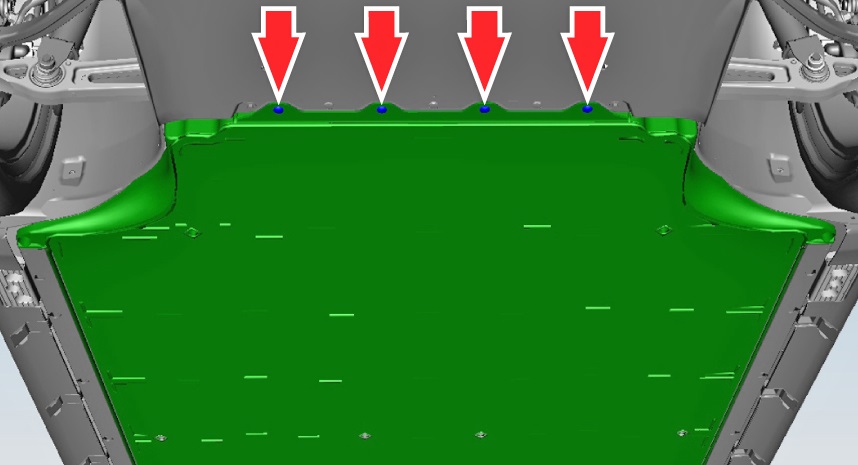 Remove the bolts (x4) that secure the HV battery and skid plate to the front subframe