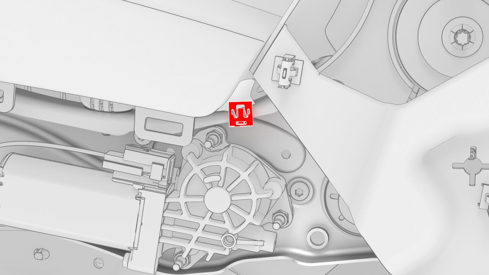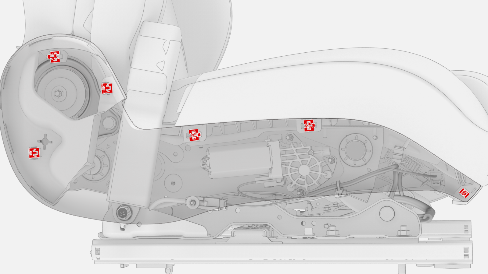Lift the rear lower panel and install the screw that attaches the inner seat trim to the driver's seat assembly (torque 2 Nm).