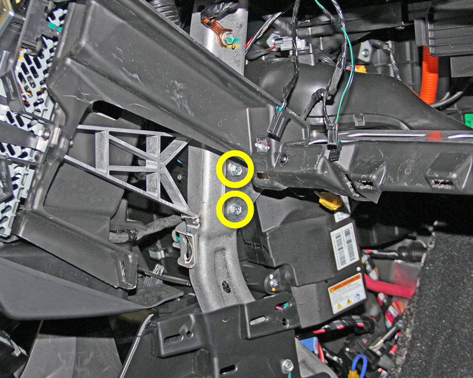 - Remove the screw (torque 1 Nm) that attaches the RH footwell duct to the HVAC assembly, and then remove the RH footwell duct.