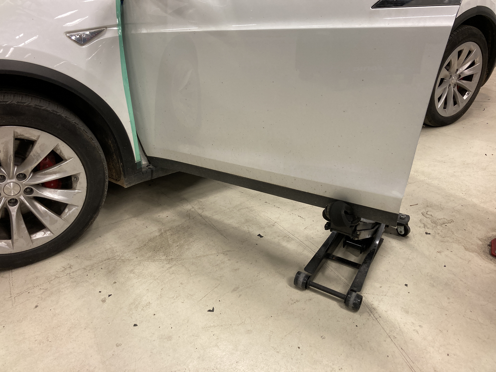 CAUTIONPut a soft object in between the floor jack's saddle and the door to prevent damage to the paint.