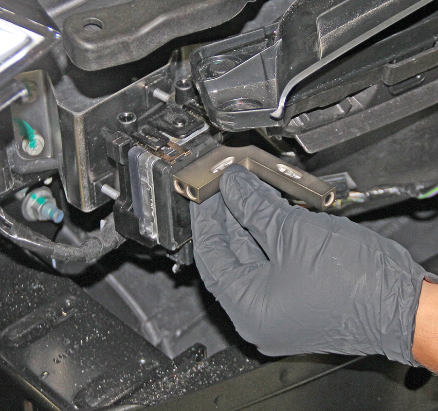 Gently support the bubble tool flat against the upper center portion of the radar sensor face.