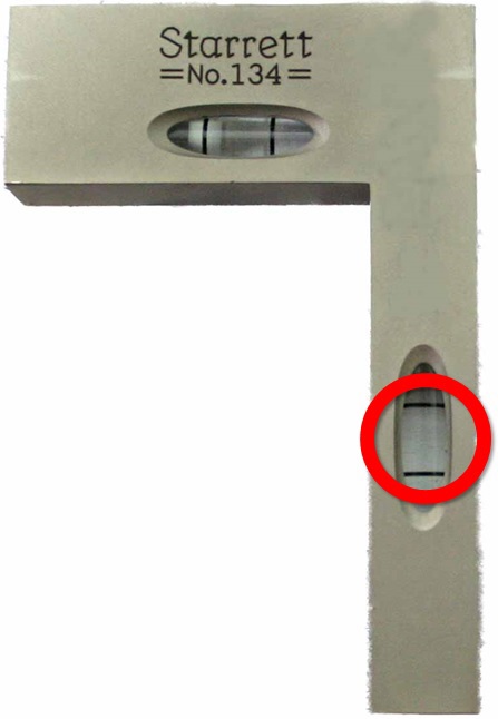 The bubble must be centered between the 2 black lines to achieve the required calibration.