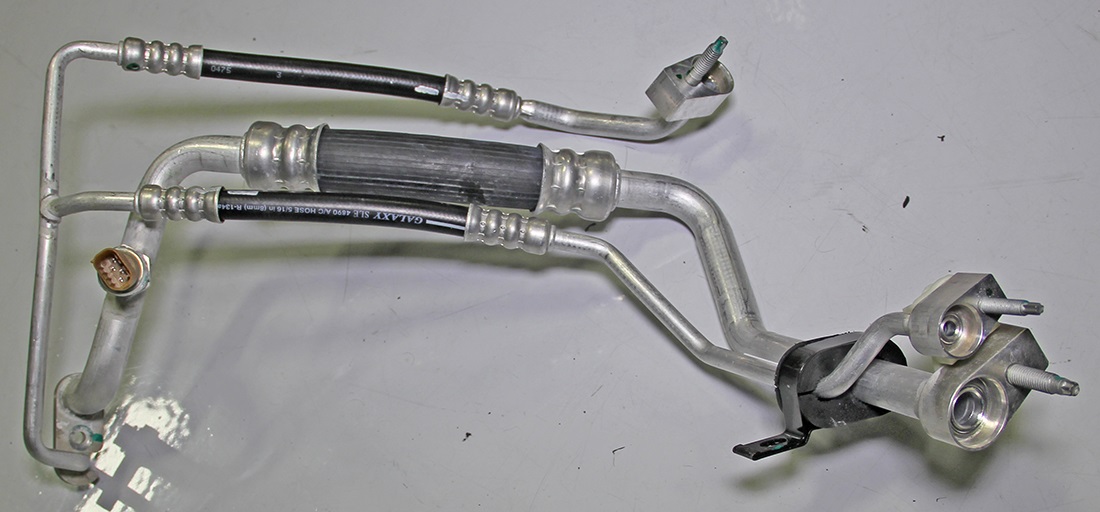 Remove the condenser-to-chiller high/low pressure pipes from the vehicle.
