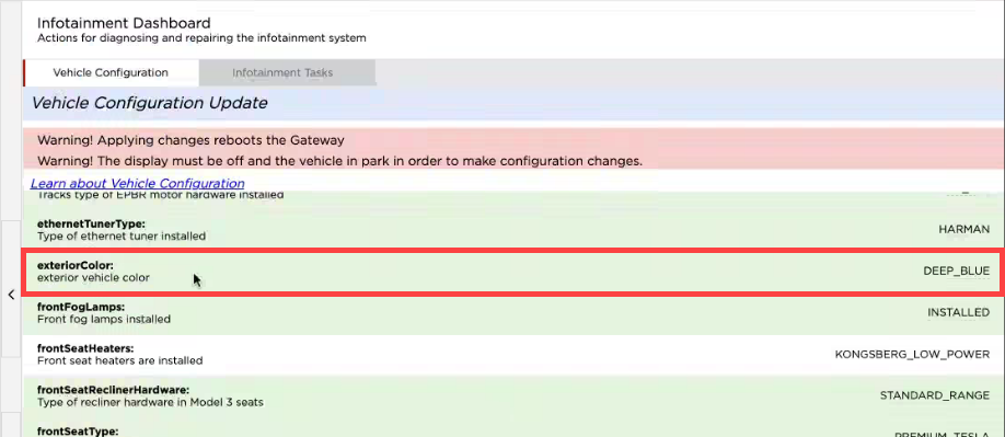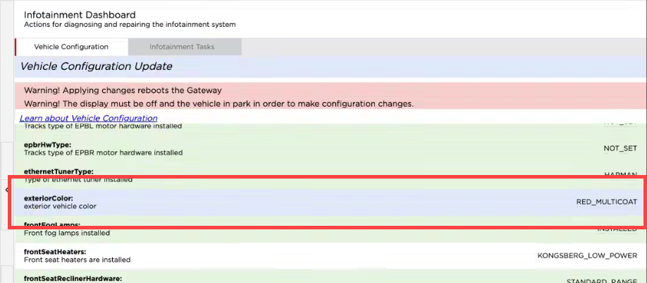 update to the vehicle configuration.