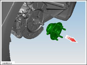 - Remove the LH rear wheel. See Wheel Assembly (Remove and Install).
