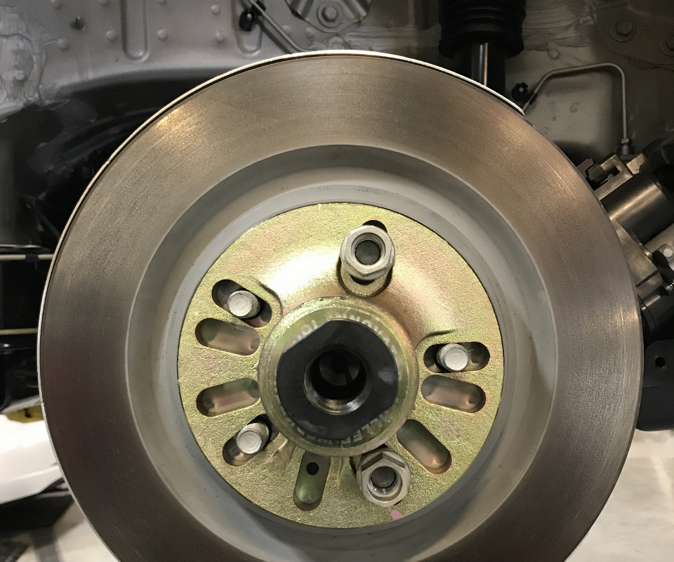 - Remove the hydraulic hub puller tool from the LH rear wheel studs.