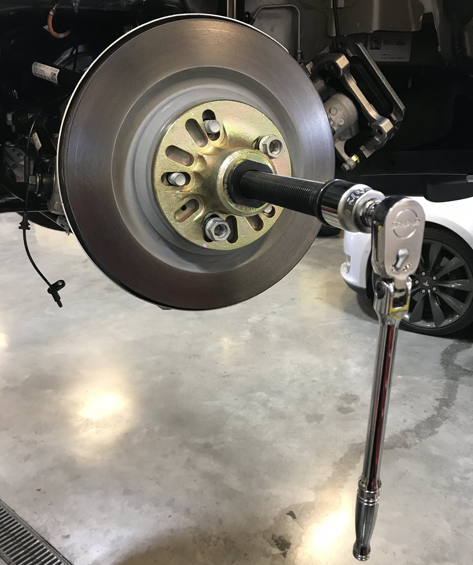 - 2023-04-12: Added steps to remove wheel, push in axle, and note to use a short socket to remove the hub mounting bolts.