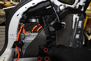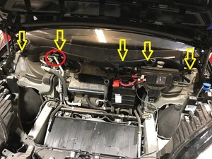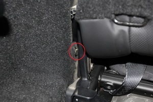 Note5x push clips, One is hidden between 3rd row seat and trunk side carpet panel