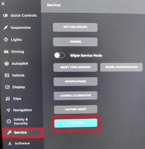 NotePlace air suspension into "Jack Mode" if equipped, Service > Jack Mode