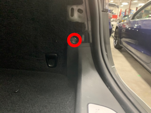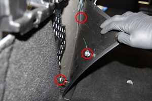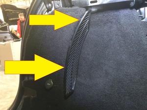 Note3x push clips, One is hidden between 3rd row seat and trunk side carpet panel