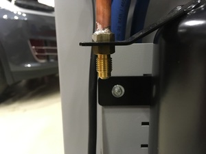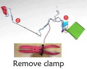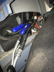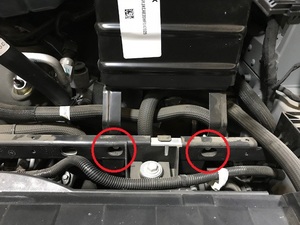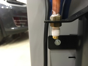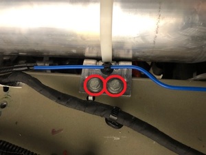 Install fir tree clips securing blue airline to air tank reservoir brackets