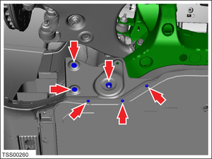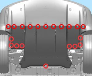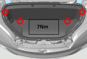 Note4x clips, 2x patch bolts, T25, 2.5 Nm, Discard after removal