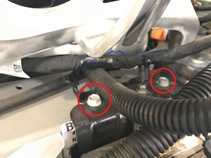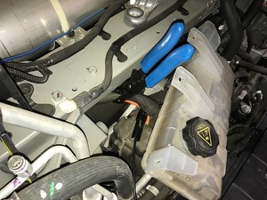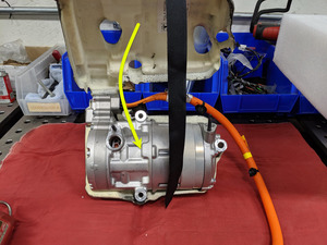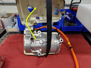 Connect A/C compressor harness to FJB and install cable fir tree to drive unit