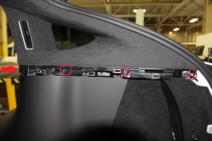 Remove screws securing C-pillar lower panel to LH parcel shelf support