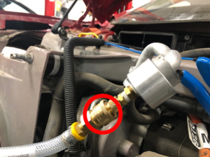 Note(Touch time only) Ensure quick connects are fully engaged, turn connector dials clockwise to fully connect to A/C service ports