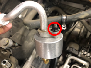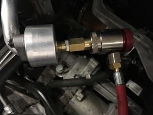 Remove dust caps from vehicle’s high-side and low-side service ports