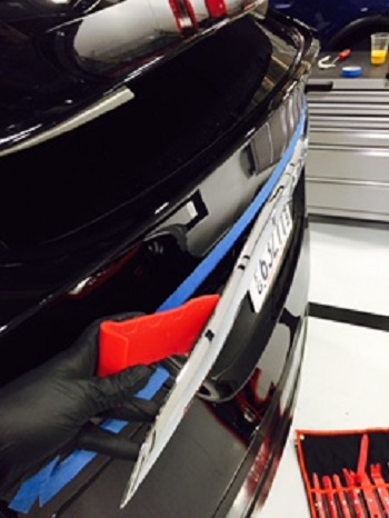 - Using IPA, remove tape residue from the liftgate and taillight area.